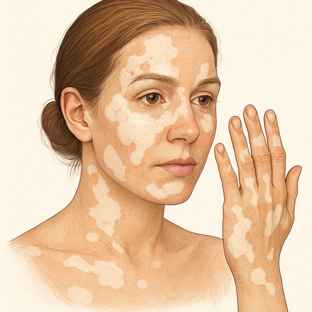 From a modern standpoint, Vitiligo is an autoimmune condition where the body's immune system mistakenly attacks and destroys melanocytes—the cells responsible for producing skin pigment (melanin). This results in the appearance of smooth, white patches on the skin, which can appear anywhere on the body.